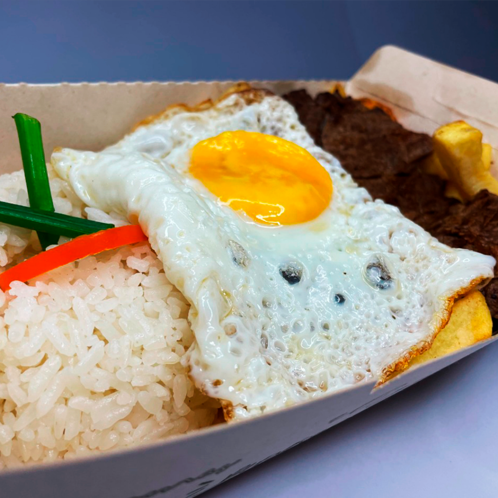 Almuerzo a base de verduras, proteína animal y carbohidrato. Servicio en envase biodegradable.