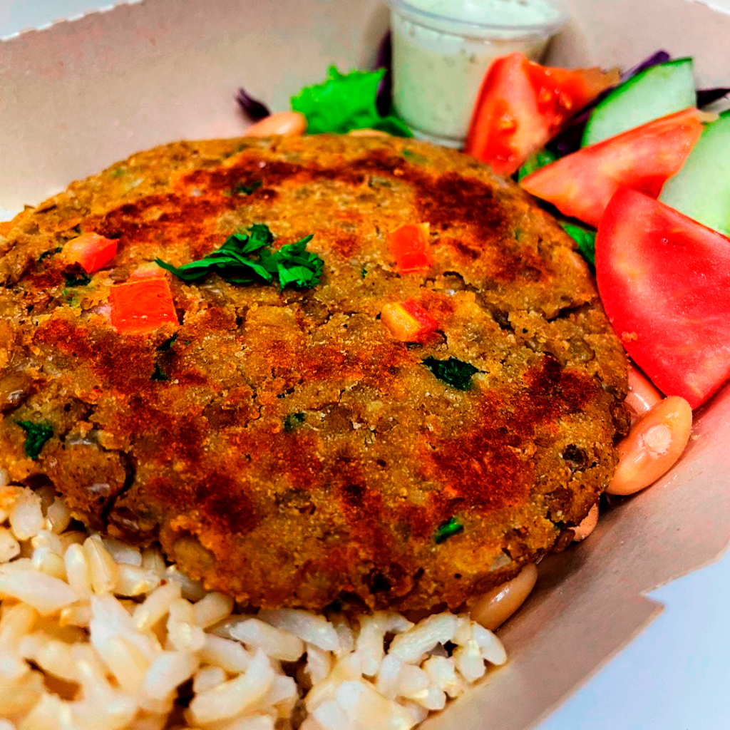 Almuerzos variados sin proteína animal. Servido en envase biodegradable.